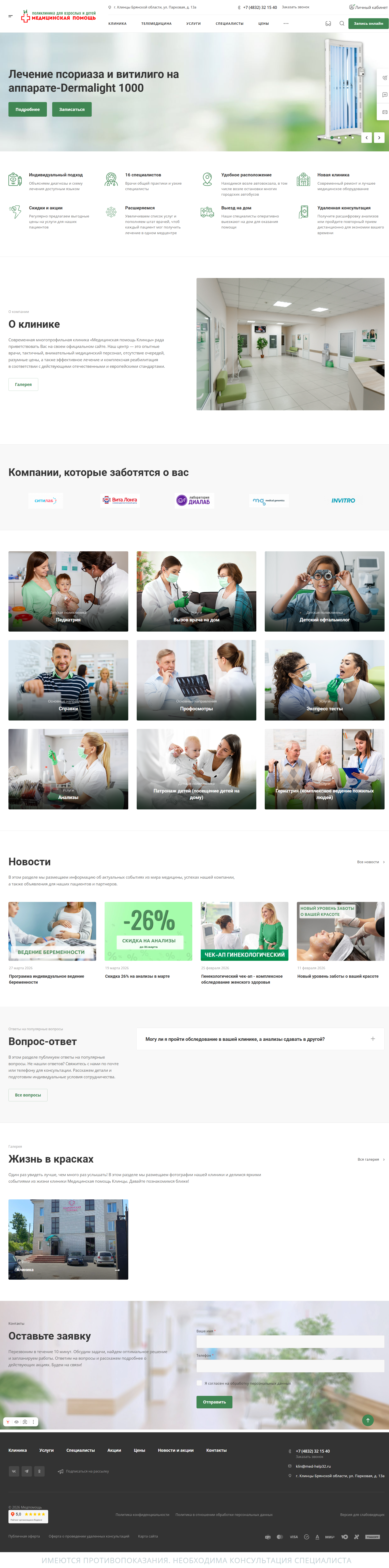Корпоративный сайт для «Медицинской помощи» Брянск
